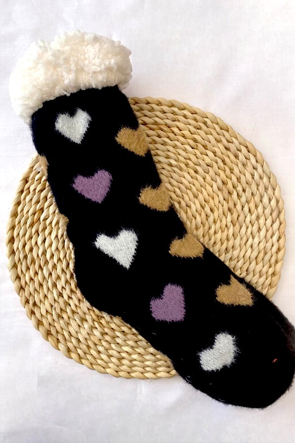 Γυναικεία Χειμερινή Χνουδωτή Κάλτσα με Καρδιές