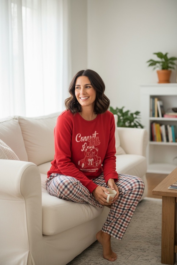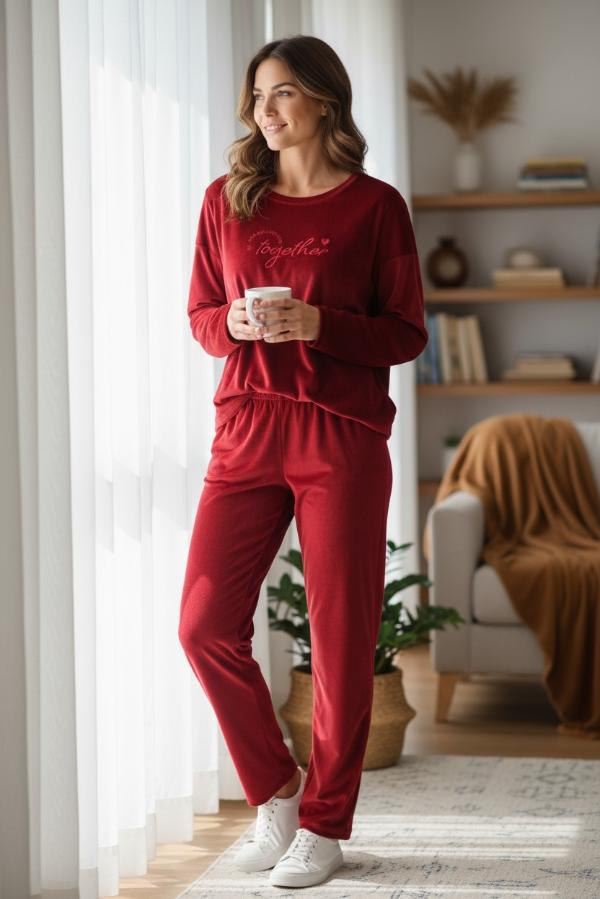 Γυναικείο Βελούδινο Σετ Homewear – Κόκκινο