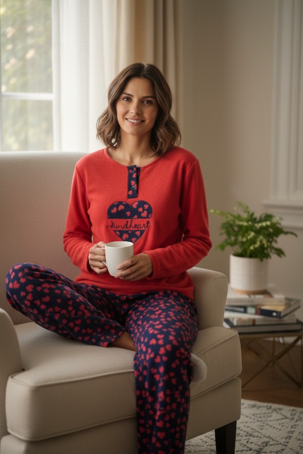 Γυναικεία πιτζάμα Fleece Με Σχέδιο Καρδιές