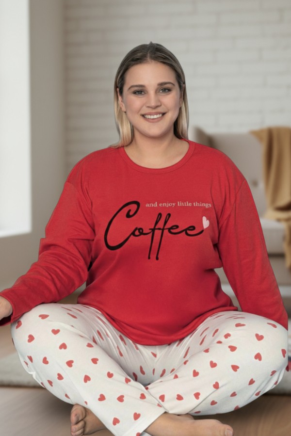 Γυναικεία Πιτζάμα Plus Size με Σχέδιο “Coffee Time”