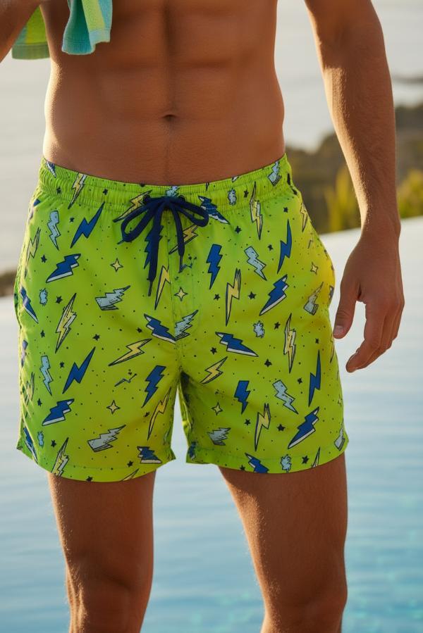 Ανδρικό Μαγιό Βερμούδα Κοντή Με Κεραυνούς – Λαχανί