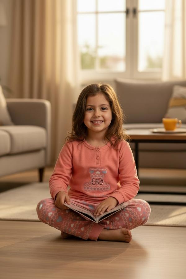 Παιδική | Εφηβική Fleece Πιτζάμα Με Σχέδιο Αρκουδάκι – Ροζ