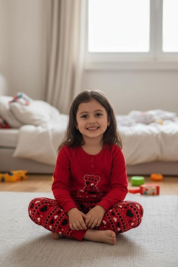Παιδική | Εφηβική Fleece Πιτζάμα Με Σχέδιο Αρκουδάκι – Κόκκινη