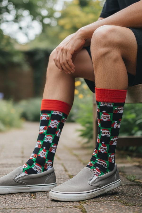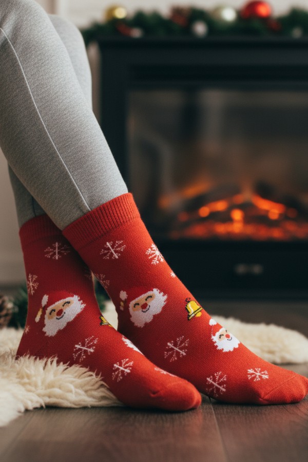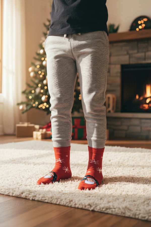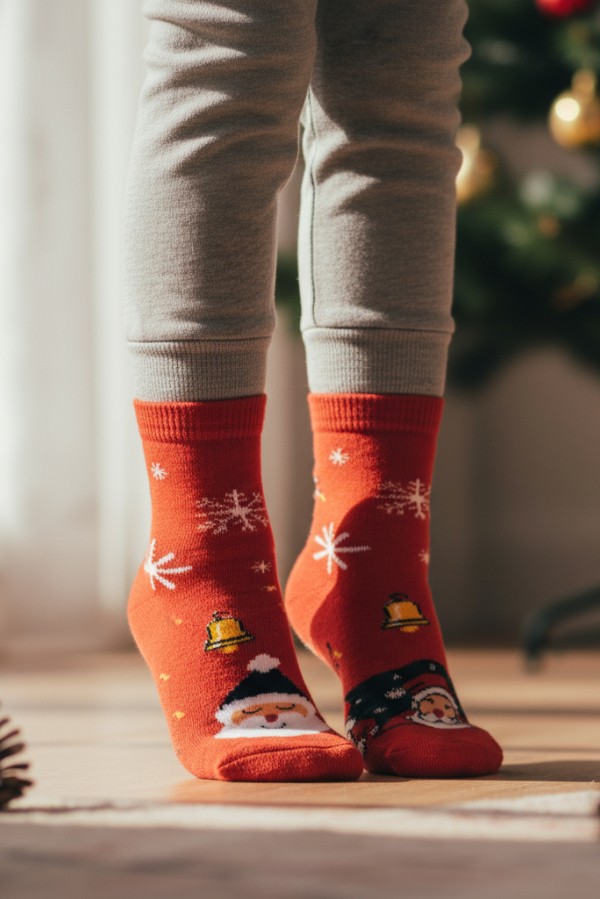 Παιδικές Χριστουγεννιάτικες Κάλτσες με Σχέδιο Άγιο Βασίλη και Βεντουζάκια