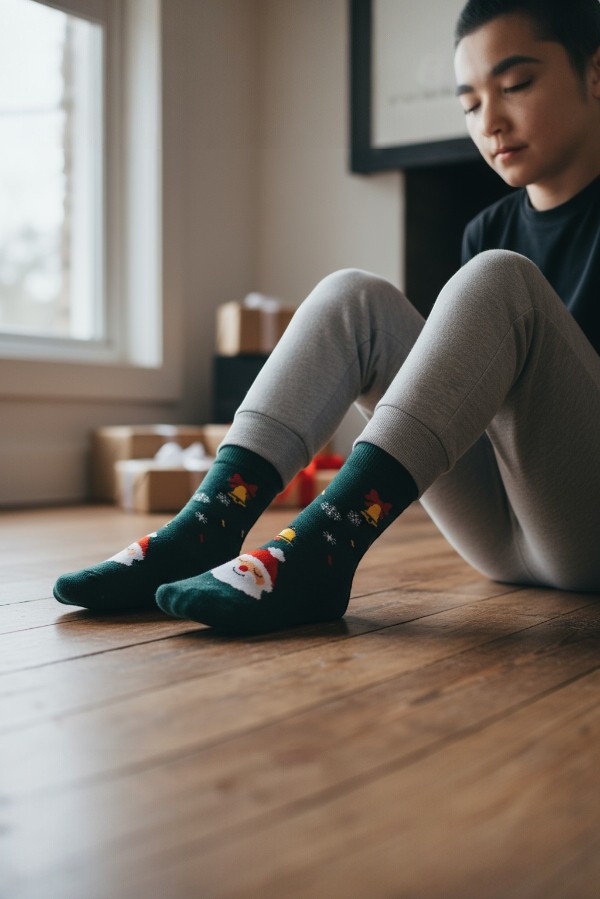 Παιδικές Χριστουγεννιάτικες Κάλτσες με Σχέδιο Δεντράκι και Βεντουζάκια