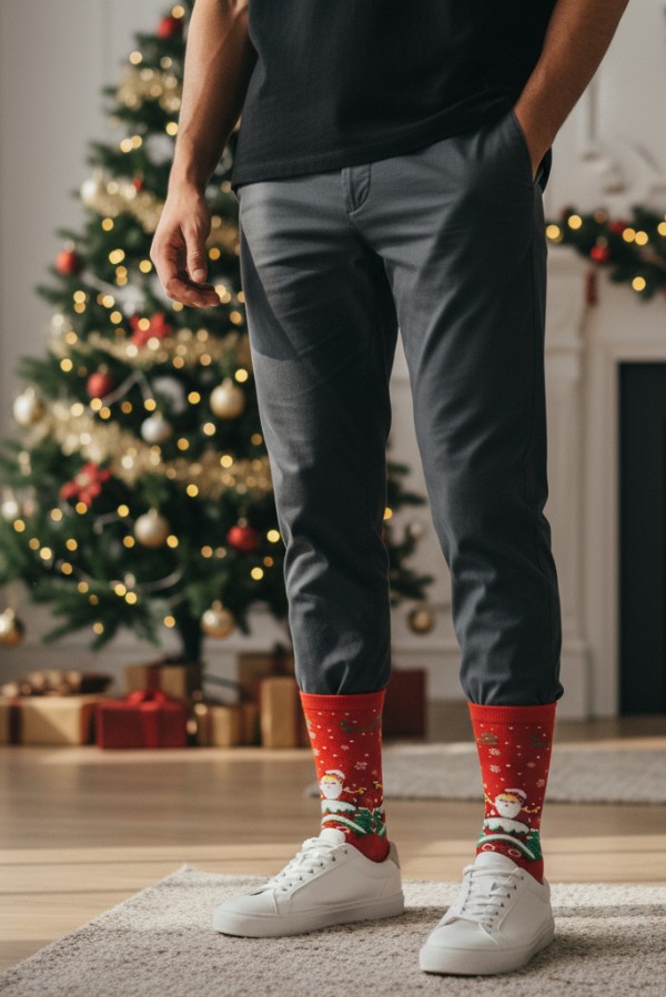 Ζεστές και άνετες χριστουγεννιάτικες κάλτσες με σχέδιο χριστουγεννιάτικου δέντρου, δώρα, ζαχαρωτά και αστέρια! Η εσωτερική επένδυση από μαλακή πετσέτα προσφέρει απόλυτη άνεση και ζεστασιά, ιδανική για τις κρύες χειμωνιάτικες μέρες. Το ελαστικό τελείωμα εξασφαλίζει τέλεια εφαρμογή, ενώ το γιορτινό σχέδιο θα προσθέσει χρώμα και χαρά στις ημέρες των Χριστουγέννων.